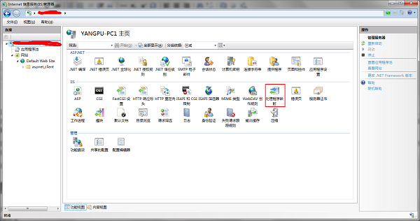 打開(kāi)IIS管理工具,選擇“處理應(yīng)用程序映射”。