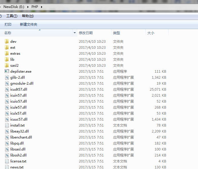 第二步:解壓下載的PHP壓縮包。
